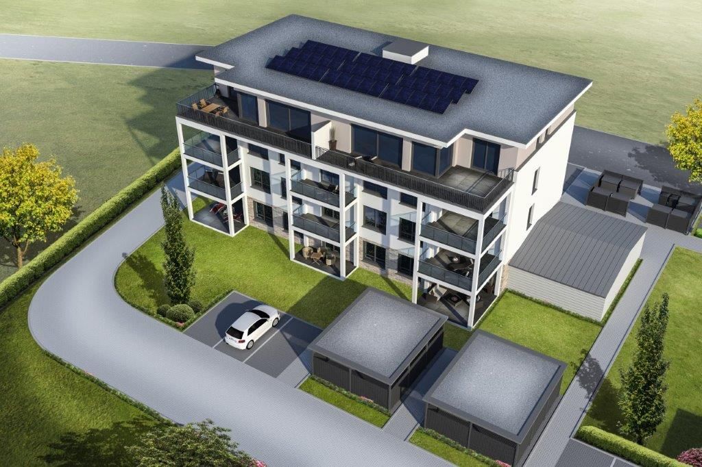 Die modernen Raumaufteilungen der Wohnungen bilden eine Basis für individuelle Einrichtungsideen. Balkone und Terrassen, große Fensterelemente und Grünflächen erschaffen hier eine freundliche Wohnatmosphäre mit viel Leichtigkeit. Alle Etagen sind mit einem Fahrstuhl erreichbar. PKW-Stellplätze und ein Schuppen für Fahrräder sind zu jedem Haus geplant.