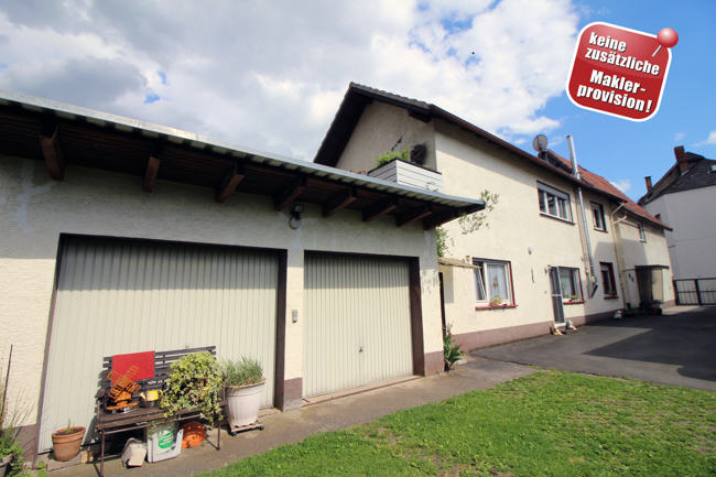 Ein- bis Zweifamilienhaus, sieben Zimmer, zwei Bäder, Balkon, Kaminofen, Hof, Garten, zwei Garagen, großer Carport, keine zusätzliche Maklerprovision