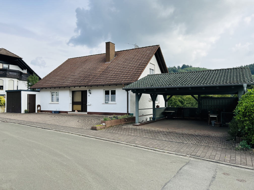 Wohnen auf einer Ebene mit Keller und halb ausgebautem DG (Studio). Freistehendes, geräumiges und gepflegtes Einfamilienhaus mit Garage, Doppelcarport und Garten