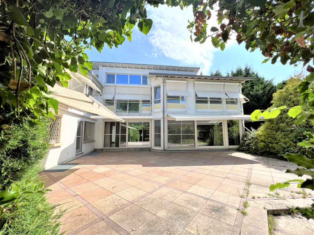 Repräsentatives Villenanwesen mit hochwertig angelegtem, parkähnlichem Grundstücksareal. Das herrlich angelegte, ca. 1.300 m² große Grundstück ist bepflanzt mit großzügigen Rasenflächen sowie schönem, altem Baum- und Pflanzenbestand. Eine großzügige Sonnenterrasse sowie ein vielseitig nutzbares Gartenhaus wurden hervorragend in die Außenanlage integriert. Es besteht die Möglichkeit, zusätzlich ein ca. 1950 m² großes Baugrundstück zu erwerben. Ursprünglich ca. 1935 in hochwertiger Massivbauweise erbaut, wurde das extravagante, individuelle Ein-/Zweifamilienhaus ca. 1999 generalsaniert und erweitert. Es bietet insgesamt ca. 346 m² Wohnfläche verteilt auf 3 Ebenen sowie ca. 170 m² Nutzfläche. Die funktionale, absolut zeitlose Architektur verbindet sich perfekt mit der edlen Ausstattung. Herzstück ist der großzügige, offen gestaltete Wohnbereich mit Ausgang auf die uneinsehbare Sonnenterrasse und in den Traumgarten. Großzügige Verglasungen verleihen den traumhaft gestalteten Räumlichkeiten Behaglichkeit, Wärme und Lichtfülle. Zur Ausstattung gehören hochwertige Parkett- und Marmorbeläge, eine extravagante Lichtgestaltung der Deckenbereiche mit LED-Einbauspots, großzügige, maßgeschneiderte Einbauschränke sowie ein attraktiver, offener Kamin mit sichtbarer Flamme. Eine äußerst großzügige Garage mit Platz für mindestens 3 Fahrzeuge sowie zwei weitere PKW-Stellplätze runden das Angebot ab.