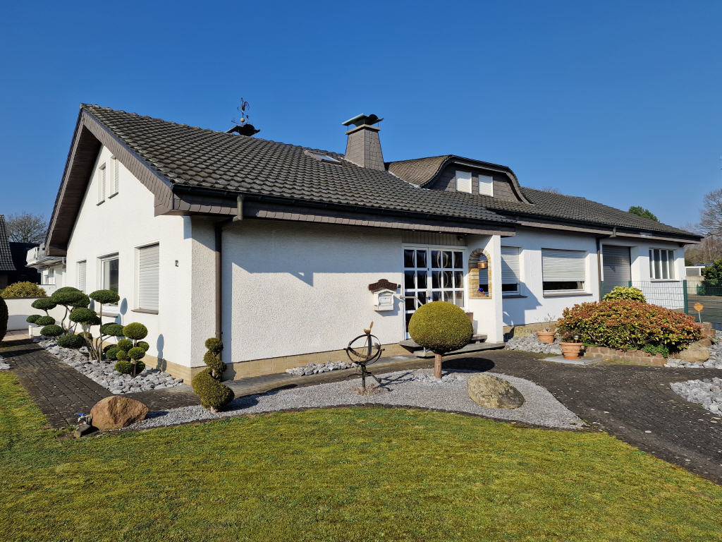 Die Wohnfläche des Hauses beträgt ca. 220 m² im Erd- und Dachgeschoss. Angegliedert ist die große Garage mit hohem Rolltor (ca. 3,6 m) und hinter liegendem Abstellraum (Sozialraum) und WC. Die Ausstattung des Hauses entspricht in Teilen dem Standard der 70/80iger Jahre. Das Duschbad im Erdgeschoss sowie das geräumige Bad im Dachgeschoss mit Eckwanne und Dusche wurden ca. 1990 erneuert. Die Beheizung und Warmwasseraufbereitung des Hauses erfolgt über eine Öl-Zentralheizung aus ca. 1989 (Energieausweis: B, 175,1 kWh (m²·a), Heizöl EL, Energieeffizienzklasse F, Baujahr 1958). Zusätzlich befindet sich im Dielenbereich ein Kaminofen. Das große Grundstück ist umfangreich mit Verbundsteinpflaster befestigt. Der südliche, durch einen Eisenzaun abgeteilte Grundstücksteil im Bereich des Wohnhauses ist als Ziergarten angelegt. Die Immobilie steht leer und kann somit kurzfristig übernommen werden.