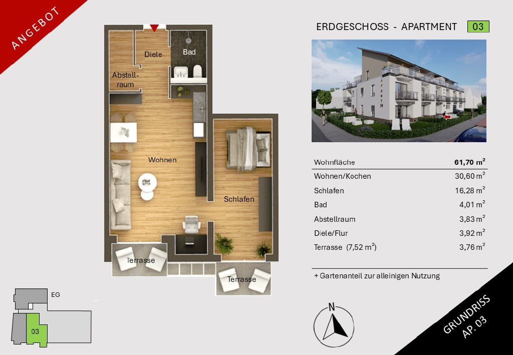 Ap. 03 - EG - 2 Zimmer - 61,70 m² - 233.500 €