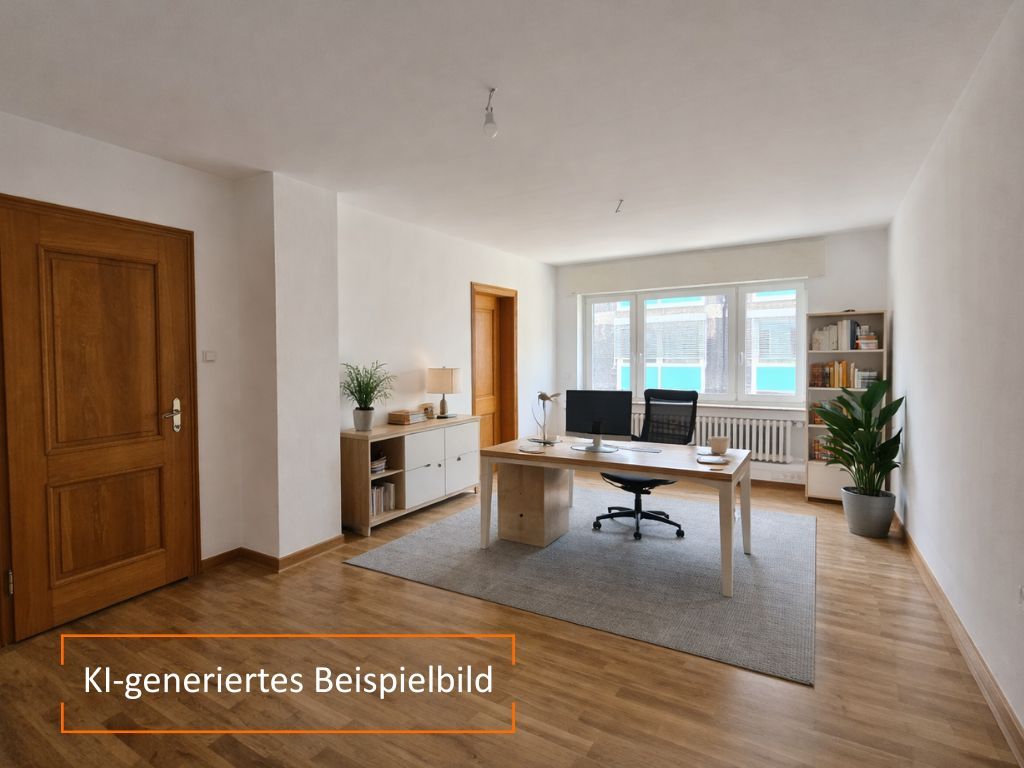 Die Bürofläche liegt im 1. Obergeschoss eines Wohn- und Geschäftshauses aus dem Baujahr 1900/1950. Mit einer großzügigen Nutzfläche von ca. 124 m² und einem Parkettboden präsentiert sich die Fläche in einem guten Zustand. Separate Toiletten für Damen und Herren sind vorhanden, sodass ein angenehmer Komfort für Mitarbeiter und Kunden gewährleistet ist. Die WC-Anlagen und die Teeküche werden in Zukunft gemeinsam mit dem Mieter aus dem Dachgeschoss genutzt.