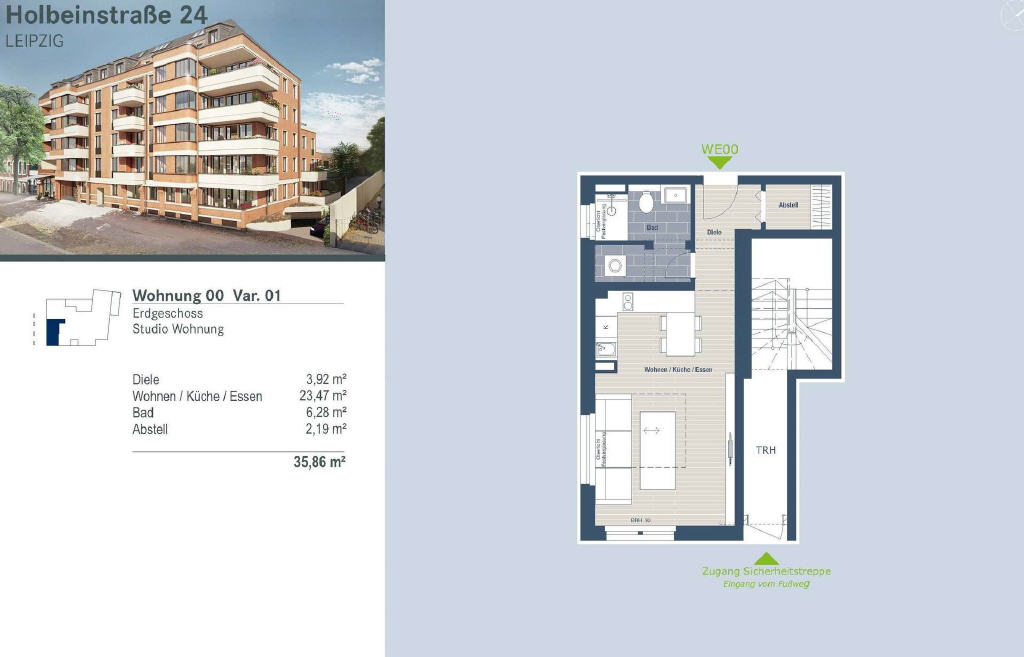 Objekt-Nr.: 0-9017290 · Interne Nr.: Holbeinstr. 24 WE 00 · Online-Nr.: 12285036 · Flächen- und Maßangaben sind ca.-Werte. Es gelten die Allgemeinen Geschäftsbedingungen des Anbieters. * Monatliche Kaltmiete zzgl. Nebenkosten