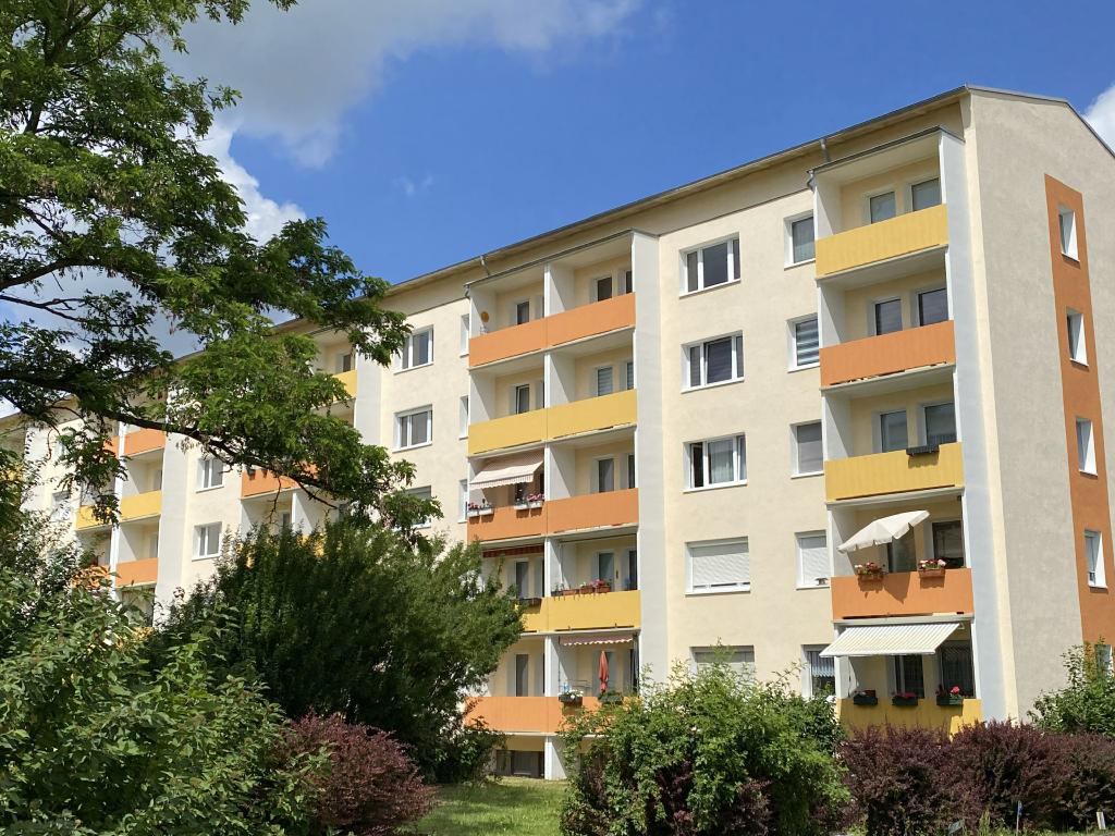 Die angebotene 3-Raum-Wohnung befindet sich im Erdgeschoss eines gepflegten und sanierten Mehrfamilienhauses aus dem Jahr 1968. Auf etwa 60 m² bietet sie eine praktische Raumaufteilung in gemütlichem Ambiente. Hervorzuheben ist das lichtdurchflutete Wohnzimmer mit Balkonzugang, welcher zur riesigen Grünfläche hin ausgerichtet ist. Besonders angenehm ist zudem das Tageslichtbad mit moderner Dusche.