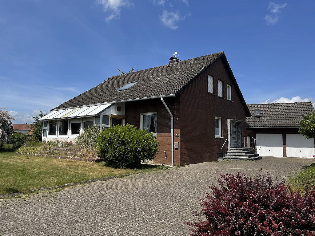 Dieses großzügige Wohnhaus befindet sich in ländlicher Siedlungslage von Hille-Nordhemmern. Es wurde 1971 in massiver Bauweise auf einem Eigentumsgrundstück mit 1.004m² erstellt.