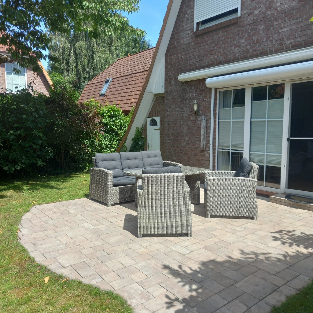 Das schön angelegte Grundstück ist Teil eines gepflegten Wohnareals, das seinerzeit von einem Bauträger in mehreren Einheiten errichtet und nach Teilungserklärung in wirtschaftlich unabhängige Wohneinheiten aufgeteilt wurde. Das Grundstück präsentiert sich eingewachsen und gepflegt, mit einem durchdacht angelegten Außenbereich, der sowohl gepflasterte Flächen als auch grüne Ruhezonen umfasst. Eine sonnige Terrasse mit Markise lädt zum Verweilen und Entspannen ein – ein perfekter Ort für sommerliche Grillabende oder den ersten Kaffee am Morgen.