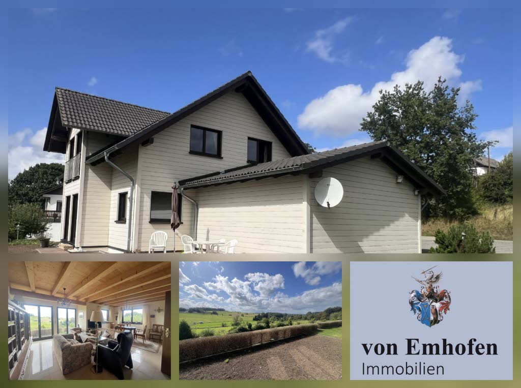 In traumhafter Aussichtslage von Nümbrecht, Ortsteil, gelegenes Holzhaus der Firma Stommel, Baujahr 2014, EG mit großem Wohn-Essbereich, Küche, Duschbad, OG mit 3 Zimmern und geräumigem Duschbad, Wohnfläche 141 m², moderne Technik, Fußbodenheizung mit Wärmepumpe, Doppelgarage, Grundstück ca. 750 m² in Süd-Westausrichtung, Kaufpreis: € 395.000