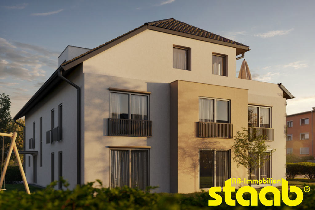 In ruhiger und begehrter Lage von Aschaffenburg-Damm entsteht bis 2026 ein moderner Neubau mit lediglich vier exklusiven Wohneinheiten. Die angebotene 3-Zimmer-Dachgeschosswohnung besticht durch ca. 102,11 m² Wohnfläche, einen durchdachten Grundriss sowie eine stilvolle Ausstattung – ideal für Paare, kleine Familien oder Individualisten mit gehobenem Anspruch. Der offen gestaltete Wohn-, Ess- und Kochbereich bildet das Herzstück der Wohnung und öffnet sich zur sonnigen Loggia. Großzügige Fensterflächen sorgen für viel Tageslicht, eine freundliche Atmosphäre und einen harmonischen Übergang zwischen innen und außen. Zwei helle Schlafzimmer bieten ausreichend Platz für erholsames Wohnen oder flexibles Arbeiten im Homeoffice. Das moderne Tageslichtbad überzeugt mit bodentiefer Dusche, Badewanne und Handtuchheizkörper. Ergänzend stehen ein separates Gäste-WC sowie ein praktischer Abstellraum zur Verfügung. Ein besonderes Highlight ist der zusätzliche Stauraum im ausgebauten Spitzboden. Die Wohnung punktet mit hochwertiger Ausstattung, energieeffizienter Bauweise, Fußbodenheizung sowie einer klaren, zeitlosen Architektur. Die Lage verbindet ruhiges Wohnen mit den Vorteilen der städtischen Infrastruktur.