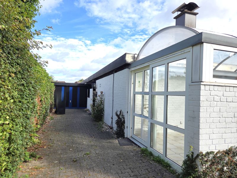 Das massive Architektenhaus im Bungalowstil wurde 1964 auf einem 521 m² großen Erbpachtgrundstück errichtet. Es ist nicht unterkellert, bietet aber auch ohne Keller sehr viel Nutzfläche. Das Haus verfügt über einen sehr schönen, gut durchdachten Grundriss. Es gibt ein sehr geräumiges Wohnzimmer mit einer Kaminecke und einem schön abgeteilten Arbeitsbereich. Die Küche lässt sich sehr gut in U-Form einrichten und gegenüber der Küche liegt das Esszimmer mit Zugang zum Garten. An das Wohnzimmer wurde 1987 ein 18 m² großer Wintergarten mit Glasdach gebaut. Es gibt drei Schlafzimmer sowie ein Bad mit Wanne und Dusche mit einem Oberlicht als Lichtquelle. Der Eingang mit kleinem Flur befindet sich an der Westseite. Es gibt dort auch ein Gäste-WC und einen Abstellraum. Das Haus bietet durch die Einbauten und Schranknischen viel Stauraum. Hinter dem Schlafzimmer an der Nordseite wurde 1977 ein ca. 11 m² großer Anbau errichtet in dem sich ein kleiner Hauswirtschaftsraum mit WC und Dusche und davor eine Laube befinden.