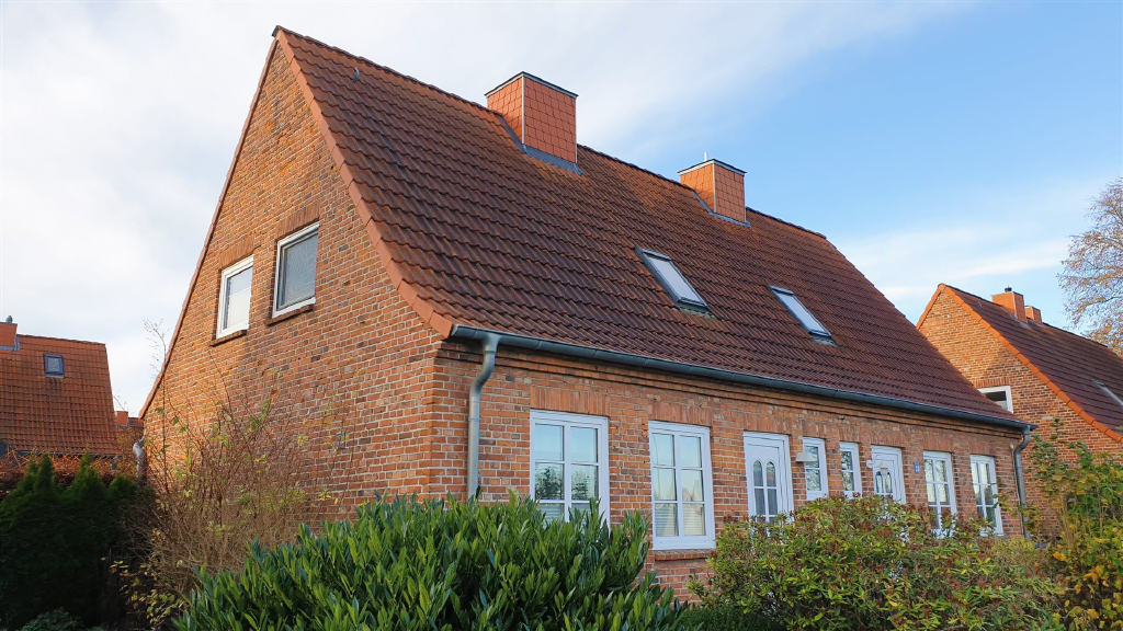 Gemütliche Doppelhaushälfte mit schnuckeligen Garten im schönen Ostseebad Eckernförde. Die 61 m² Wohnfläche verteilen sich im Erdgeschoss auf das Wohnzimmer mit Terrassenzugang, die sehr gepflegte Einbauküche und ein Duschbad sowie im Dachgeschoss 2 weitere Zimmer. Das kleine Häuschen wartet auf eine kreative Erneuerung und würde sich über Verschönerungen und Modernisierung sicher freuen. Im Teilkeller befindet sich ein Raum mit Gasheizung aus 2021, der gemeinschaftliche HWR. Sonstiges: vollgedämmter Spitzboden, Carport mit Schuppen, Pavillon.