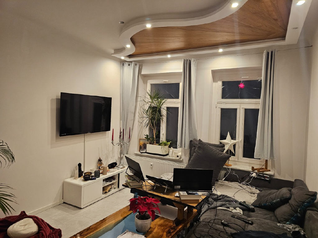 Das Haus wurde 1998 umfassend saniert. Im Jahr 2024 habe ich die Wohnung erneut modernisieren lassen. Dabei wurden eine neue Heizleitungen und Körper installiert. Die Leitungen liegen unter Putz , um eine moderne Optik zu gewährleisten. Die Wände wurden von Tapeten befreit und neu gespachtelt, was der Wohnung ein zeitgemäßes Erscheinungsbild verleiht. Durch die Umgestaltung der Innenwände ist die Wohnung nun lichtdurchflutet. Das Badezimmer wurde vollständig erneuert. Die Dusche hat eine Größe von 1*1 m, In Bad und Küche wurden Epoxidharzböden verlegt, die ich auf Wunsch gerne nach Ihren Vorstellungen neu gestalten oder erneuern kann. Die Deckengestaltung speziell im Wohnzimmer ist (m) ein Traum.