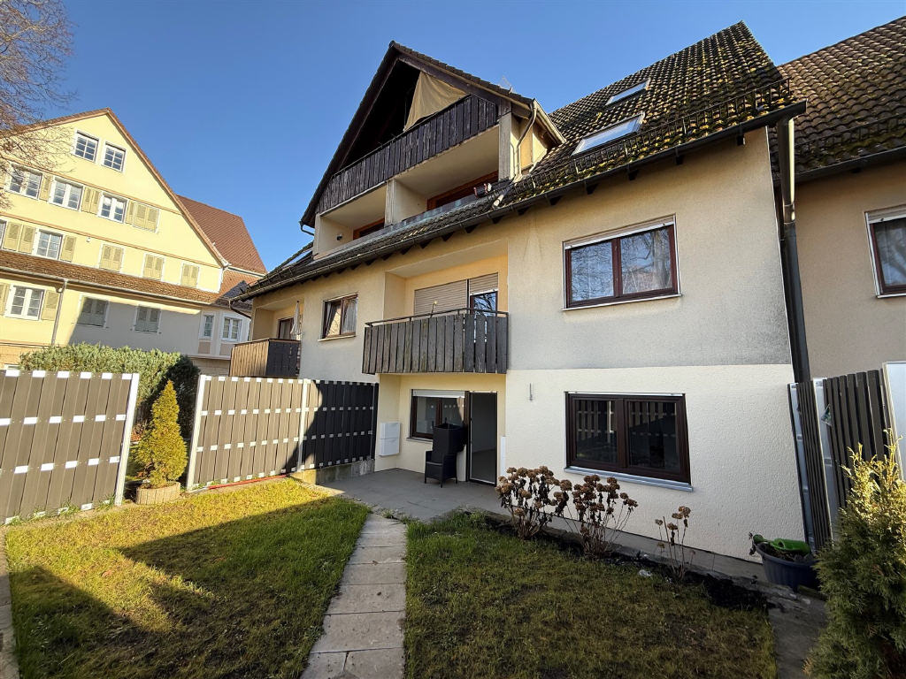 mit einer schönen großen Terrasse und einem kleinen Garten in einem 7-Familien-Wohnhaus in Welzheim anbieten zu können.