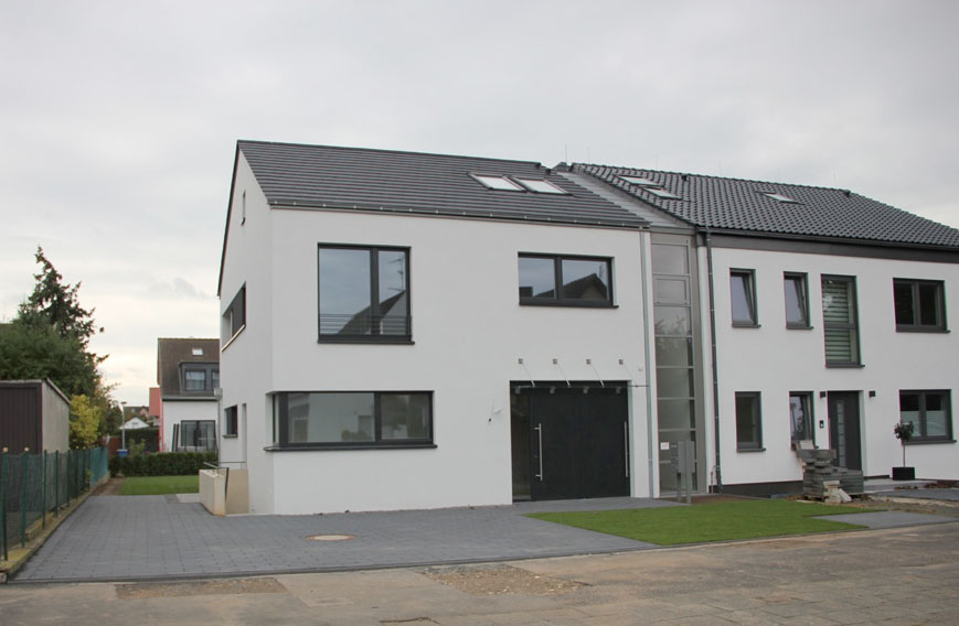 ÜBERBLICK Das neu erbaute Zweifamilienhaus ist Anfang November bezugsfertig. Die angebotene Wohnung liegt im Erdgeschoss.