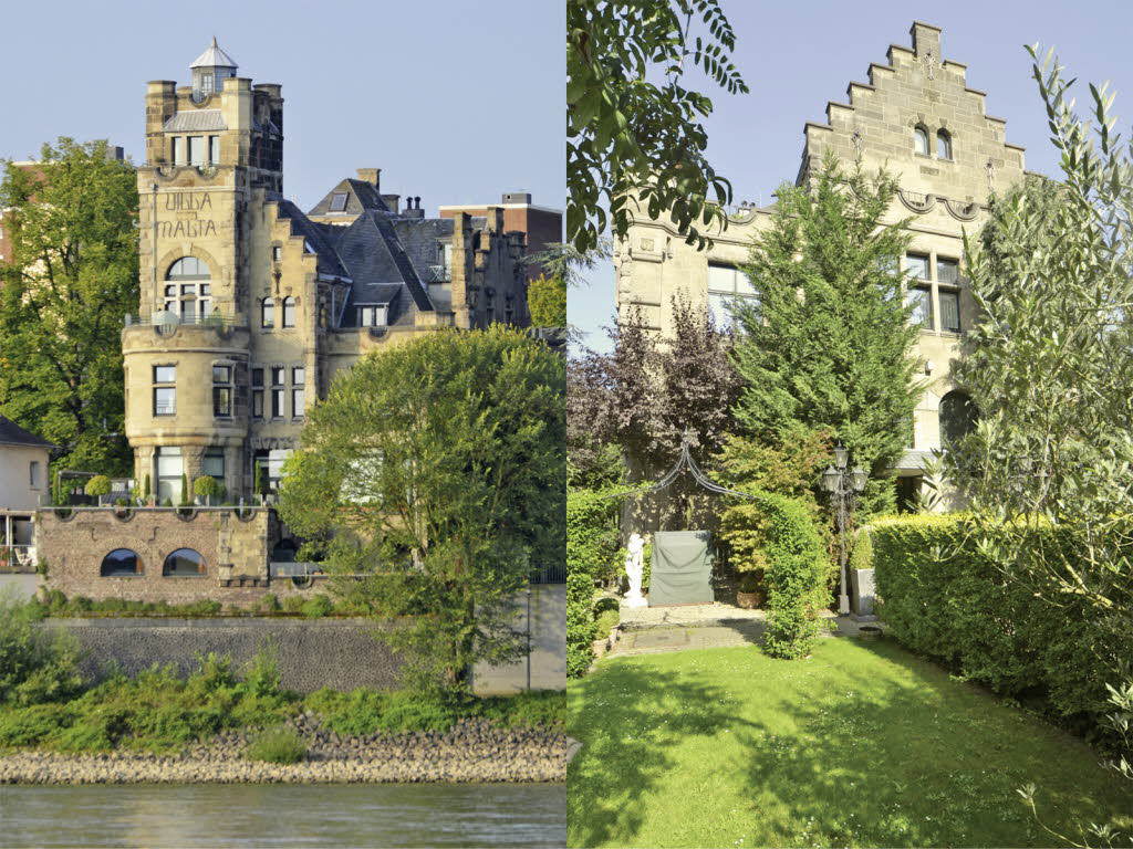 4-Zimmer-Eigentumswohnung in erster Rheinlage in der Villa Malta, mit großer Rheinterrasse und eigenem Garten, Wohnfläche 185 m² barrierefrei, Wohnküche, Wohndiele 2 Bäder, Gäste-WC, 2 Carports, eigener Hauseingang, sehr gepflegt, in schöner denkmalgeschützter Villa/ 6-Familienhaus Baujahr 1905, kein Energieausweis da Denkmalschutz, unverbaubarer Panorama-Rheinblick,