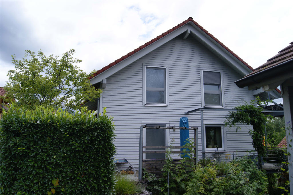 Das im Jahre 2003 in leichter Hanglage erbaute 3 Liter Niedrigenergiehaus liegt in idyllischer, ruhiger, gewachsener Wohnlage von Müllheim Feldberg. Über eine großzügige Diele, der ein Tageslicht Gäste-WC angeschlossen ist, erreichen Sie das helle, Wohn-, Esszimmer mit offener Küche sowie den umlaufenden Südwestbalkon respektive den Freisitz vor der Küche. Über eine massive Holztreppe gelangen Sie in das bis zum Dachspitz offene Obergeschoß mit seinem Tageslichtbadezimmer mit Eckbadewanne, Dusche, Waschbecken und WC, 2 Zimmern sowie einem Galeriezimmer. Dieses kann mit geringem Aufwand zu einem weiteren Zimmer umgebaut werden. Die Räume im Gartengeschoss wurden in den vergangenen Jahren zu einem großzügigem Raum (ca. 28 m² Wohnfläche) einem Tageslichtbad mit Dusche, WC, Waschbecken sowie einem Vorraum (ca. 17 m²), welcher derzeit mit einer Sauna versehen ist, ausgebaut. Eine eigenständige Nutzung als kleine Wohnung wäre möglich. Des Weiteren befindet sich hier der Haustechnikraum mit seiner Pelletheizung sowie einem Abstellraum mit angegliederten Lagerraum der sich unter dem Carport befindet und vom Gartenbereich zugänglich ist. Den Garten können Sie noch nach Ihren individuellen Vorstellungen gestalten. Besonders hervorzuheben ist: Das Haus verfügt seit 2006 über eine Photovoltaikanlage mit ca. 5,64 kWp Nennleistung, die derzeit einen monatlichen Ertrag von 261,00 € inkl. MWSt. erwirtschaftet, einem kontrollierten Wohnraumlüftungssystem, einer Regenwasserzisterne, diverse Einbauschränke z.B. einen Schuhschrank, der an das Lüftungssystem angeschlossen ist, einem Carport mit Satteldach, Stauraum, und einem davorliegenden Stellplatz, einer voll ausgestatteten Einbauküche uvm.
