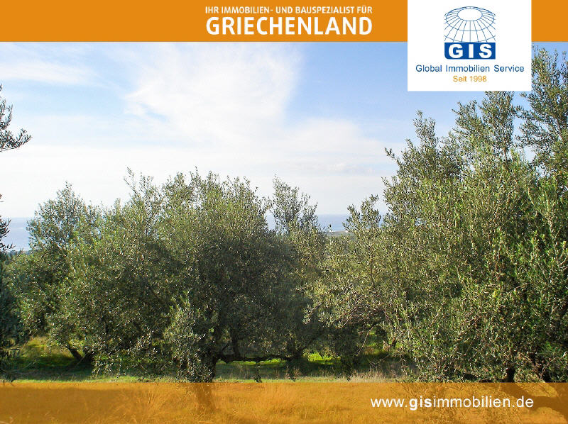 Ein wunderschönes kleines Baugrundstück mit einer Fläche von ca. 508 m² in leichter Hanglage inmitten von Olivenhainen und Blick auf das ionische Meer. Von der Straße führt ein gut ausgebauter Schotterweg auf eine Länge von etwa 50 m auf das Grundstück. Es ist insgesamt bebaubar mit ca. 240 m².