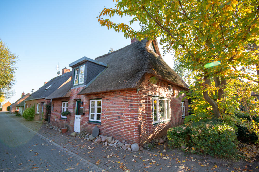 Jetzt ist die Immobilie als Dauerwohnsitz benutzt. Als Ferienimmobilie ist die ruhige, versteckte Reetdachkate natürlich perfekt geeignet. Das kleine Grundstück benötigt keinen hohen Pflegeaufwand. Einen kleinen Windfang betritt man als Erstes. Das darauf folgende Wohnzimmer wird meist von einem Ofen erwärmt. Durch die offenen Türen gelangt die Wärme schnell ins ganze Haus. Die Elektroheizungen werden eher selten genutzt. Zwei weitere Räume und die Küche mit der nostalgisch wirkenden Ausstattung geben Raum zur Entfaltung. Ein ebenerdiges Duschbad mit Außenfenster ist im Erdgeschoss vorhanden. Durch den Gartenausgang gelangt man in das kleine Gartenparadies, wo zur Zeit noch eine Hühnerschar in einem Auslauf ihr Tagewerk vollbringt. Die Gartenlaube steht für allerlei Werkzeug zur Verfügung.