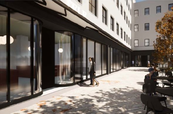 Die Sanierung des Gebäudes zielt nicht nur darauf ab, die Energieeffizienz zu verbessern, sondern auch die Außenansicht durch unter anderem hochwertige Glaselemente im Erdgeschoss zu modernisieren und somit Ihre Gastronomiefläche attraktiv zu präsentieren.