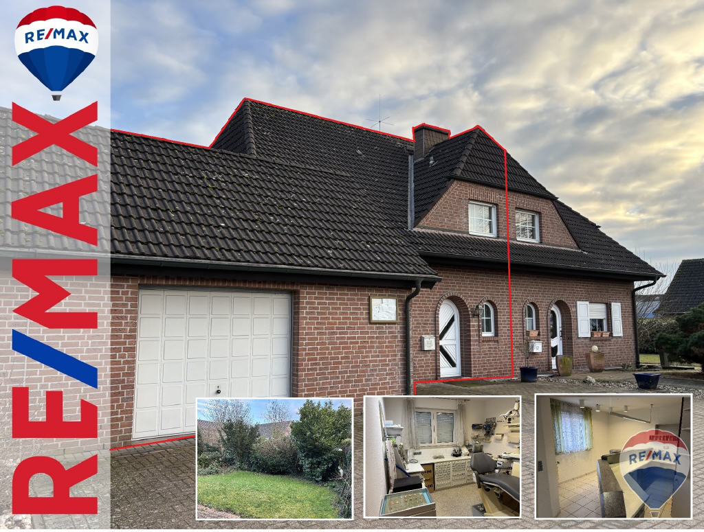 Im Erdgeschoss des Gebäudes befindet sich aktuell noch eine ehemalige Zahnarztpraxis, die sich allerdings mit Umbaumaßnahmen und Umnutzung den Wohnbereich um eine Küche, das Gäste-WC und einem großzügigen Wohn-/Essbereich auf ca. 109 m² vergrößern lässt. (siehe Zeichnung)
