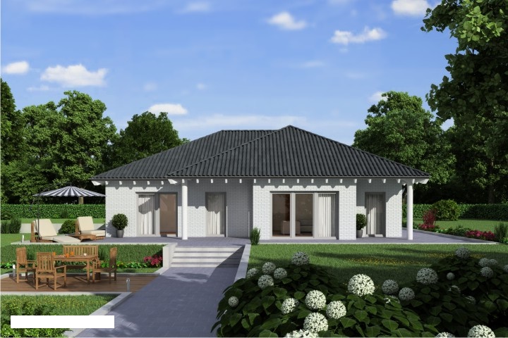 Wenn ein Haus Charme haben kann, dann dieses. Der Massivhaus Bungalow mit 122qm ist nun wirklich in seiner art bestechend gut aussehend. Klassisch von außen und revolutionär im Inneren. Zusätzlich zu der normalen Planung gibt es eine Alternative, die schon die Vorbereitung für das Alter betrifft. Hier kann nämlich eine separate Wohnung eingeplant werden. So können Ihre Besucher sich über einen abgetrennten Bereich freuen. Und auch für das Alter kann diese Einliegerwohnung genutzt werden. Zum Beispiel für die Unterbringung von Pflegepersonal.