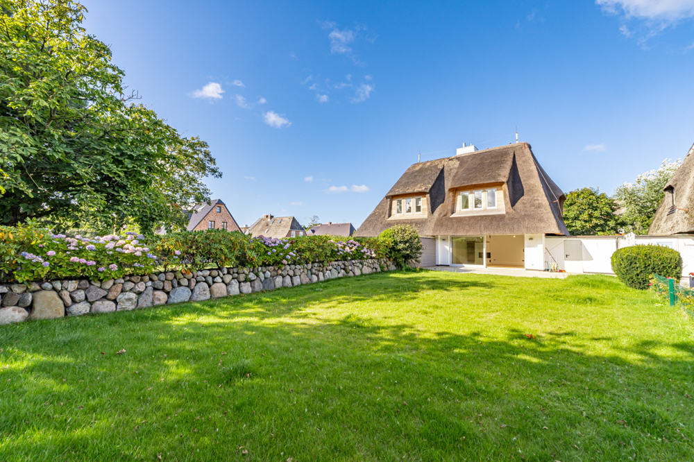 Im Süden von Keitum am Ende einer Sackgasse liegt diese tolle Doppelhaushälfte unter Reet auf einem weitläufigen Grundstück.