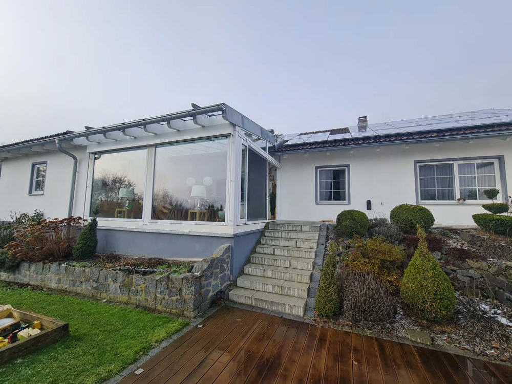 Zum Verkauf steht ein ursprünglich im Jahre 1957 errichteter Bungalow, welcher teilweise unterkellert ist. Von dem ursprünglichen Baujahr ist so gut wie nichts mehr zu erkennen, das Haus wurde fortlaufend renoviert und saniert, zuletzt im Jahr 2015. Im Jahre 2012 wurde im Garten des Hauses ein Nebengebäude errichtet, welches ein 26 m² großes Gäste-Appartement und einen Raum für die Pool-Technik beherbergt. Im Jahre 2010 wurde ein Wohn-/Wintergarten angebaut, sowie ein Außenpool 5 x 10 m, 1,50 m tief mit Überdachung zum Schieben (letztere 2020 neu) errichtet. Auch die ganze Ausstattung wie Bodenbeläge, Bad, Fenster, Dach, etc. wurden erneuert. Im Jahre 2016 wurde zusätzlich eine PV-Anlage installiert.