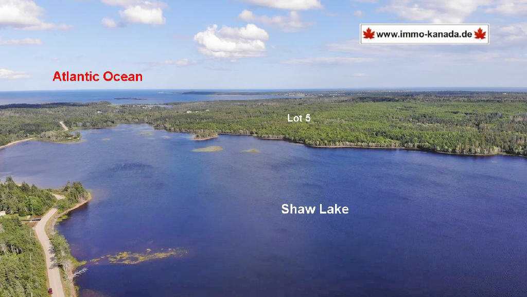 Dieses wunderschöne See-Ufer-Areal (Lot 5) mit rd. 7,7 Hektar und ca. 234 m eigener Uferfront am Shaw Lake finden Sie in herrlicher Naturlage von Pondville auf der Isle Madame. Das Areal ist Teil einer familiären Neu-Erschließung mit 11 großzügigen Grundstücken und liegt nur drei Minuten entfernt vom Pondville Beach Provincial Park mit seinem einmalig schönen und geschützt liegenden Atlantik-Strand.